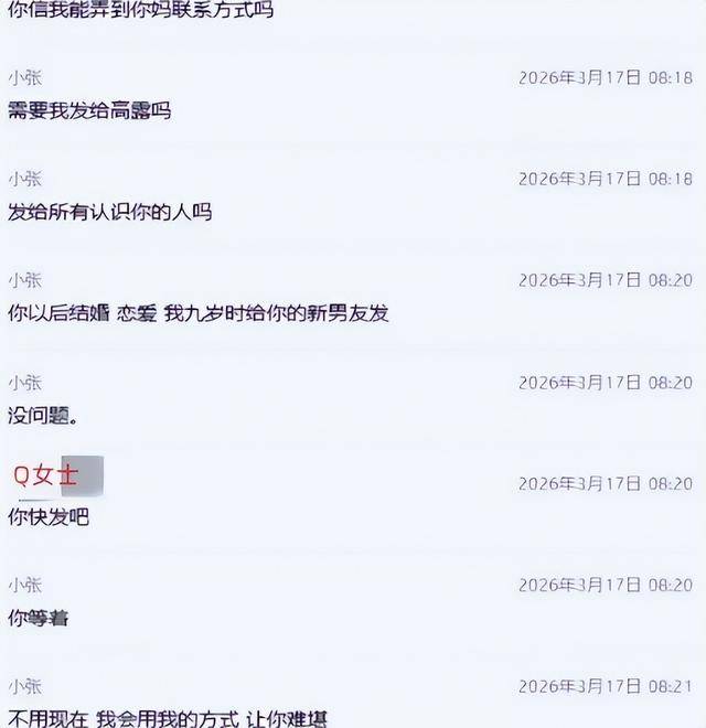 直到两人抵触彻底激化,张婉婷才做出异常手脚,给Q密斯发去威吓、口角音讯。